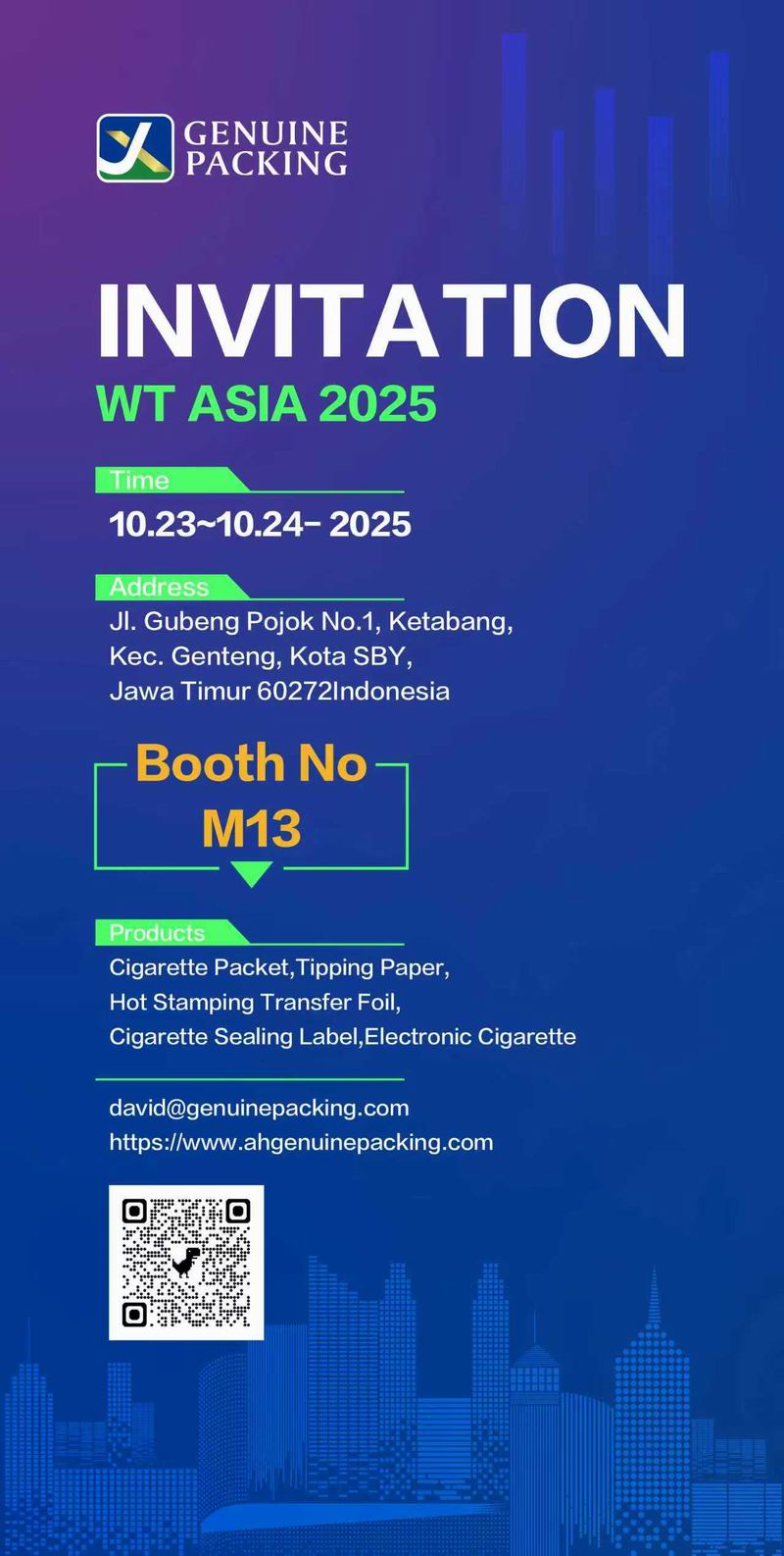SURABAYA, Indonesia – October 25, 2025 – Anhui Genuine Packing Group, a leading provider of advanced packaging technology, successfully concluded its participation at the prestigious WT Asia 2025 exhibition, held on October 23-24. The company received an enthusiastic response from visitors at Booth M13, where it presented its comprehensive range of high-quality packaging solutions tailored for the tobacco and emerging industries.