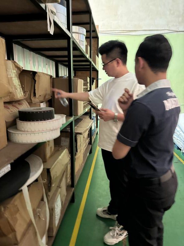 我司代表David在客户公司库房中查看样品材料,交流印刷与接装纸的应用细节。